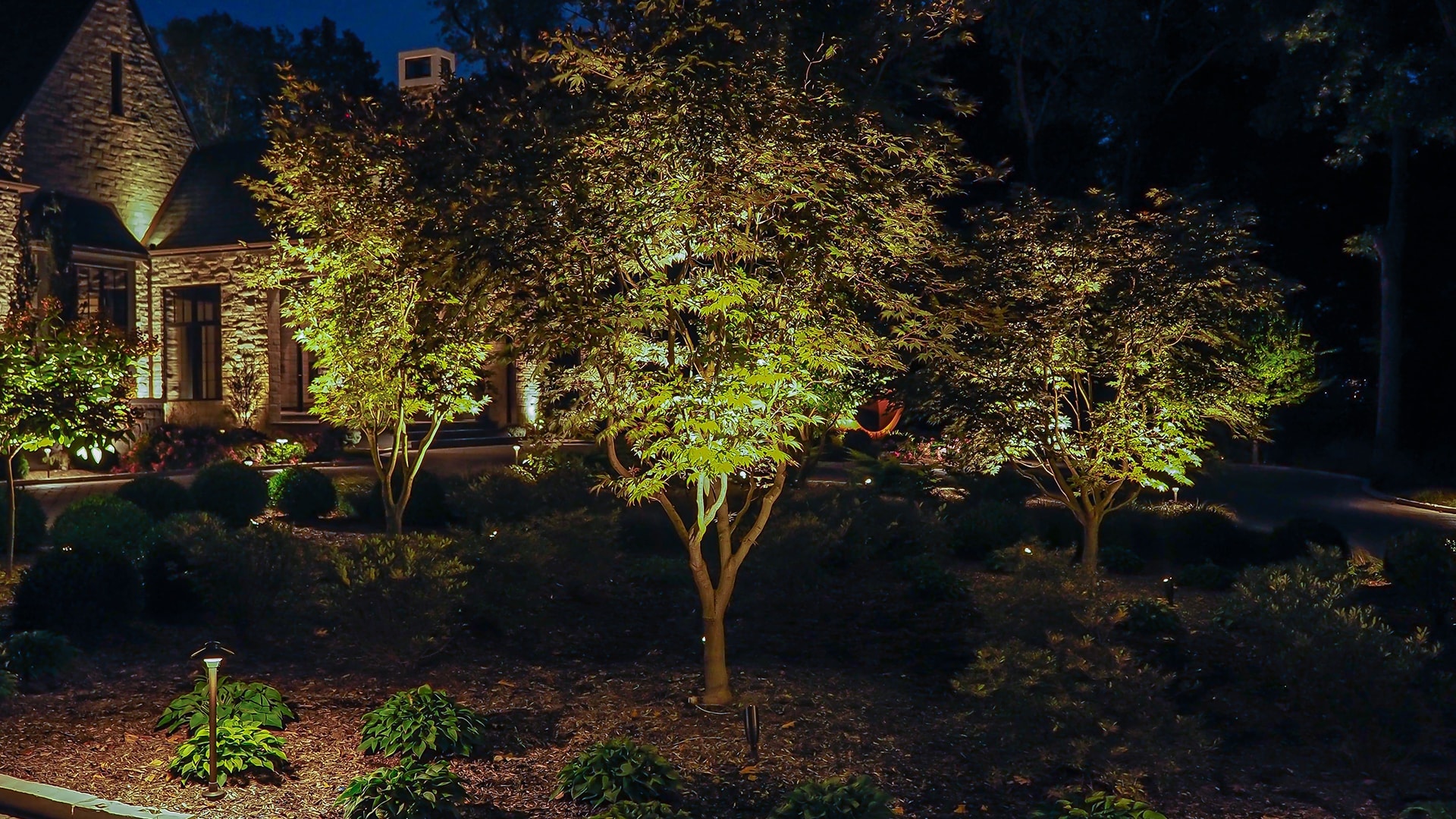 Because of the size of the grounds and the variety of functions the landscape lighting needed to fulfill, we used a broad range of fixtures and bulb types for this project. As with every Frisella Lighting project, we used carefully planned arrangements, dedicated transformers, and buried wires throughout to ensure the longevity and stability of the landscape lighting.