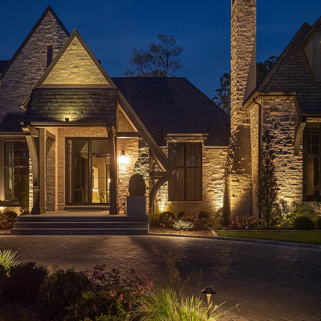 The homeowners approached us because they were looking for a lighting firm that had the capability to design and install a truly custom solution for their needs. They were looking for architectural and landscape lighting that could accentuate the beauty of their home, but also create inviting spaces for outdoor entertaining and enhance their home’s overall security.